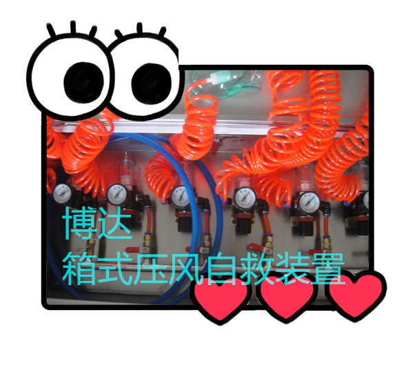 ZYJ-A型礦井壓風(fēng)自救裝置是國煤礦煤塵、瓦斯和二氧化碳突出礦井的實(shí)際情況,箱式壓風(fēng)自救裝置結合呼吸救護現場(chǎng)的實(shí)際經(jīng)驗,經(jīng)創(chuàng )新而開(kāi)發(fā)研制具有實(shí)用新型發(fā)明的一種新型壓風(fēng)自救裝置。由于該箱式壓風(fēng)自救裝置有恒定的送風(fēng)量,有手動(dòng)穩定的高壓裝置,另外還有積水排水的裝置,所以箱式壓風(fēng)自救裝置是很受礦工歡迎的一種呼吸保護器。